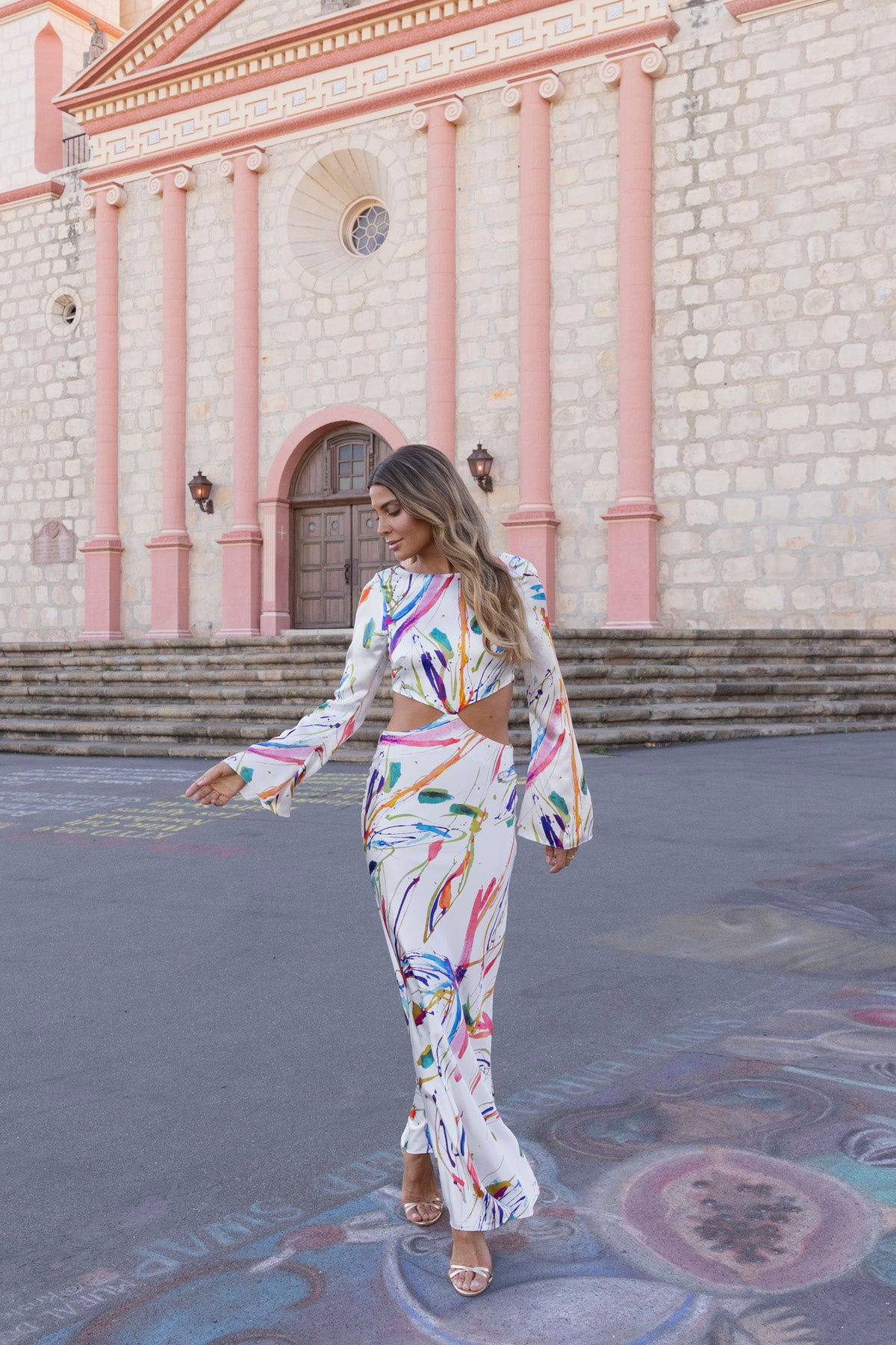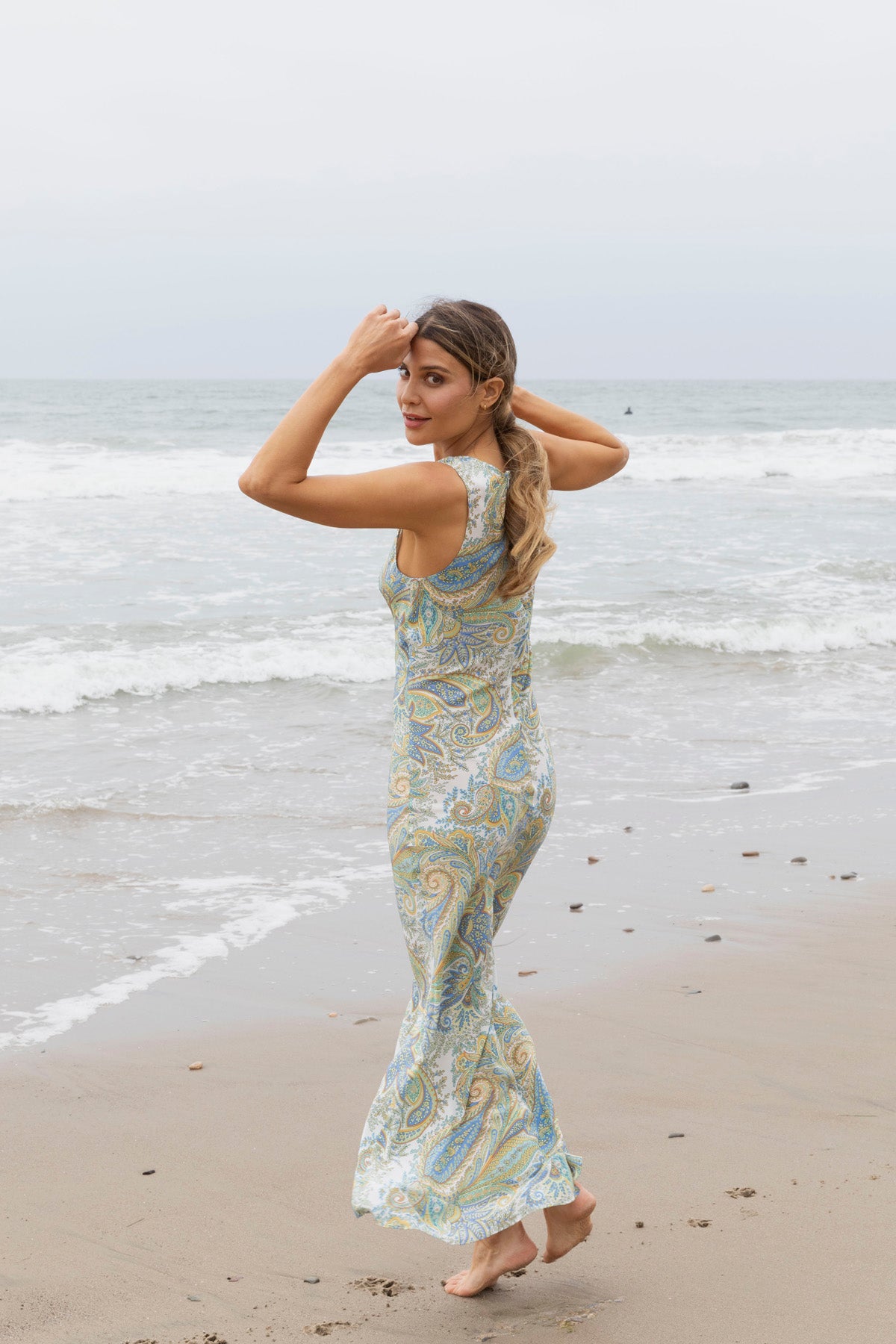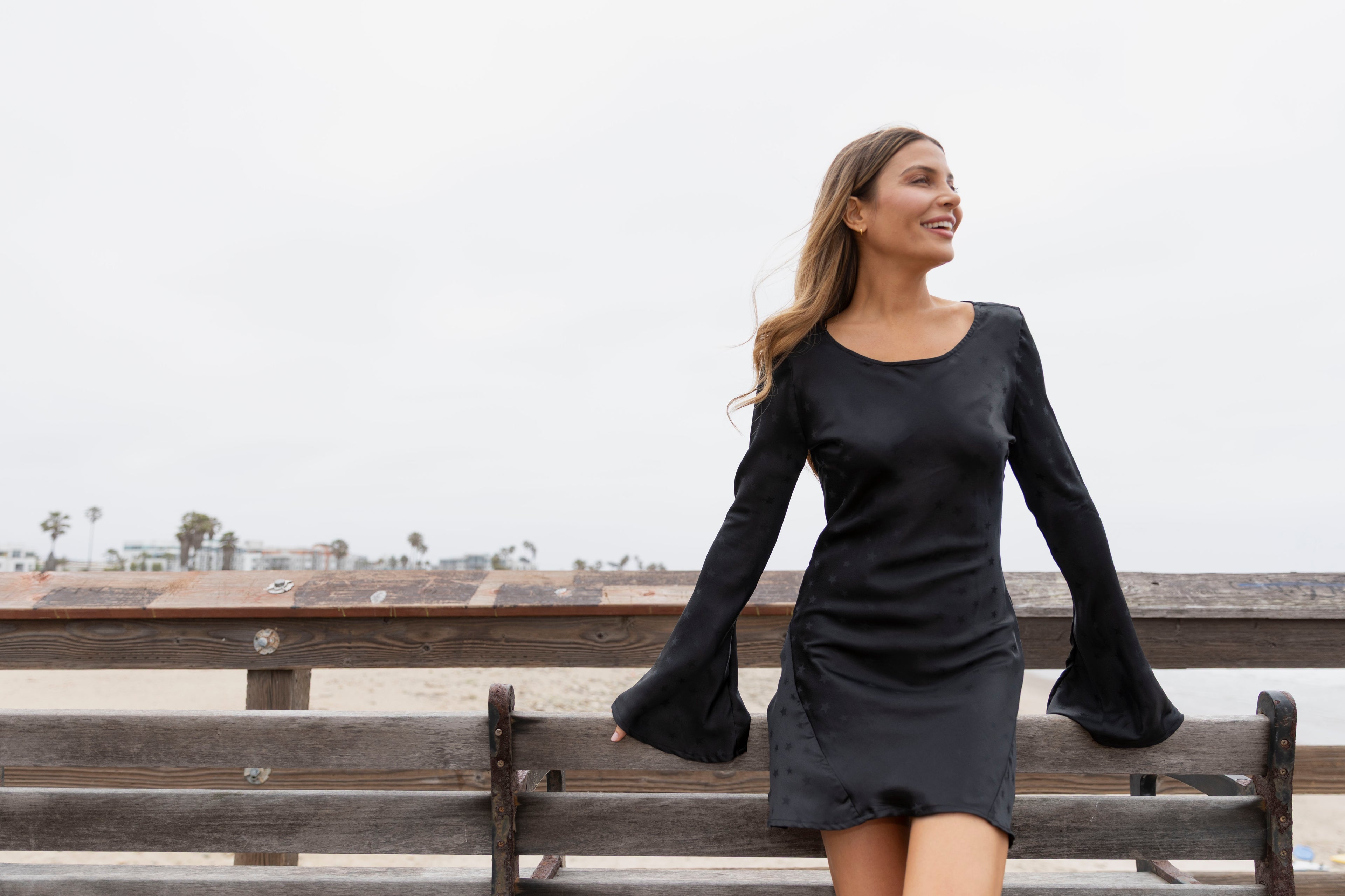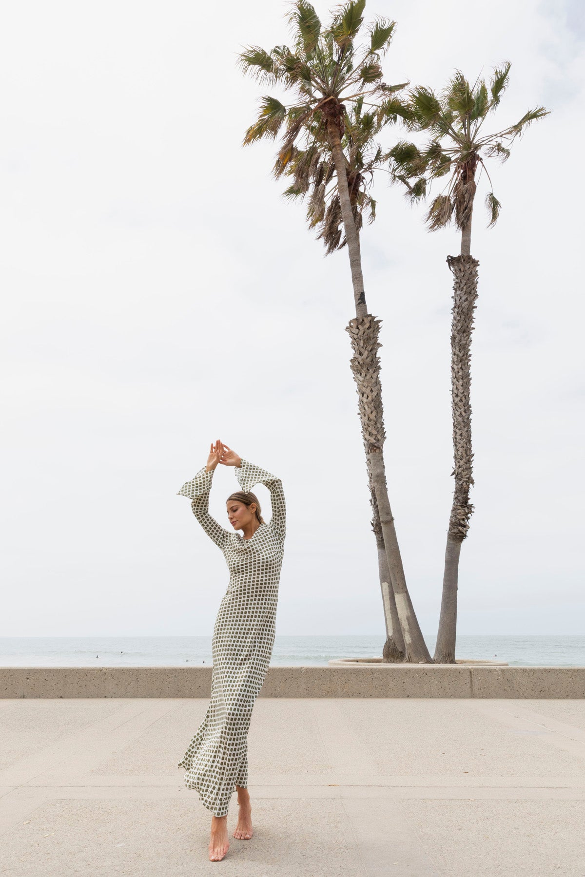 Designed for movement and magnetism, the Riviera Maxi evokes effortless elegance with a twist. Cut on the bias in luminous Silk Crepe de Chine, it features sweeping bell sleeves and a clean, slip-on silhouette. Whether you’re sipping cocktails at the coast or gliding through a gallery opening, this dress commands attention — quietly.